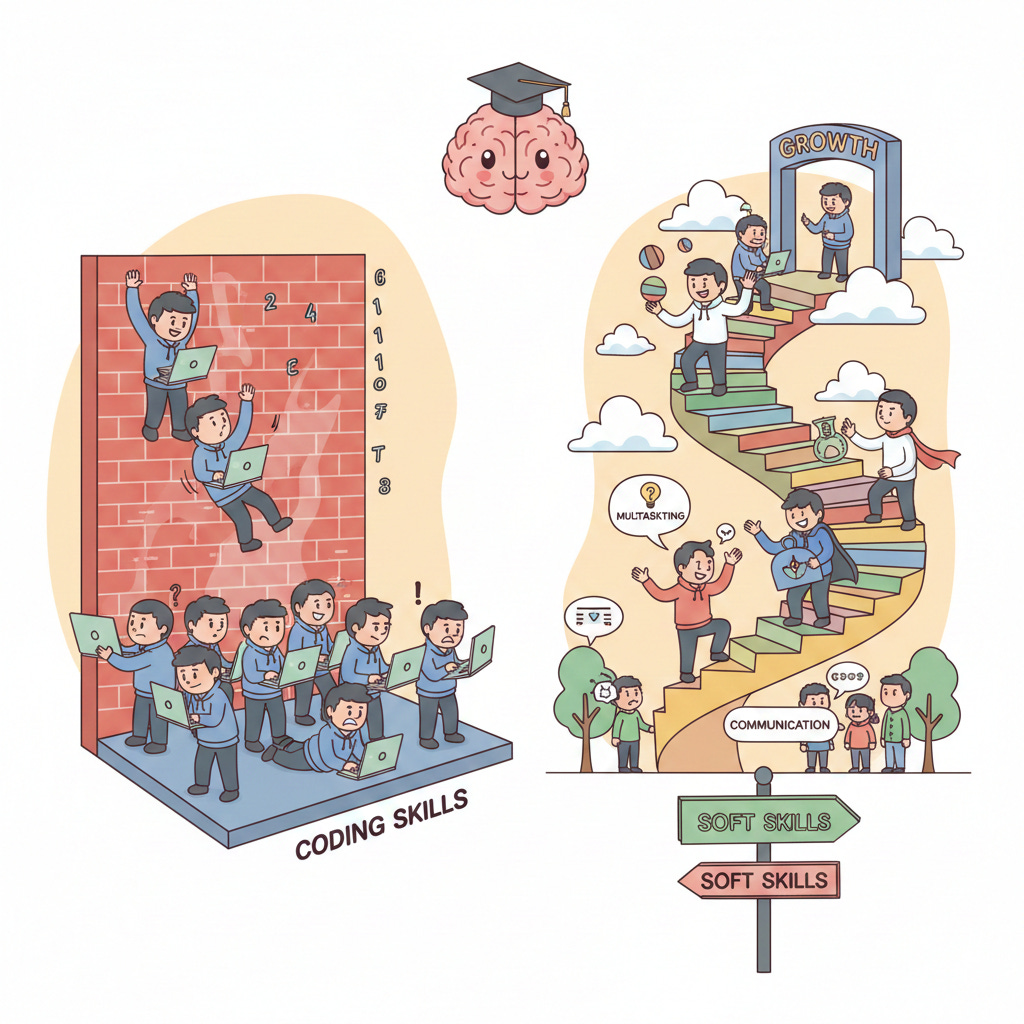 Porque mientras algunos crecen, otros —igual de buenos técnicamente— se quedan atascados. No por falta de talento. Sino por falta de habilidades no técnicas. Las que nadie te enseña. Las que no salen en el roadmap. Las que no se evalúan en el LeetCode… pero deciden ascensos, liderazgo y salario.